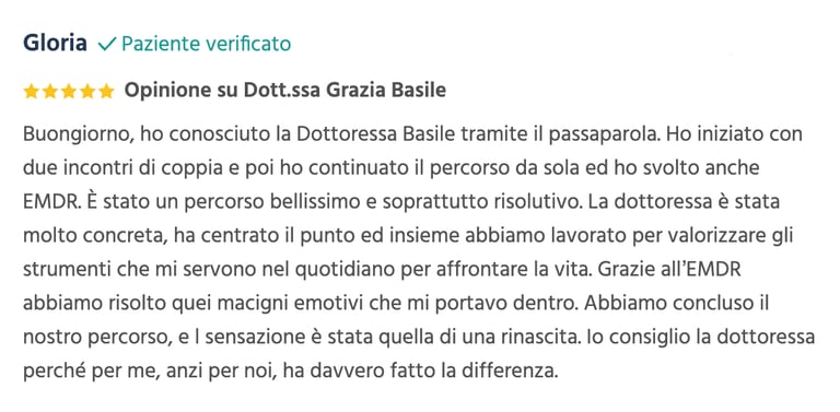 Il mio fondamento terapeutico è quello di pensare che comprendere l’origine che ha generato il sintomo disfunzionale sia la base per fondare un lavoro che ne eviti la ricomparsa in futuro, permettendo in tal modo di vivere una vita con maggiore serenità.